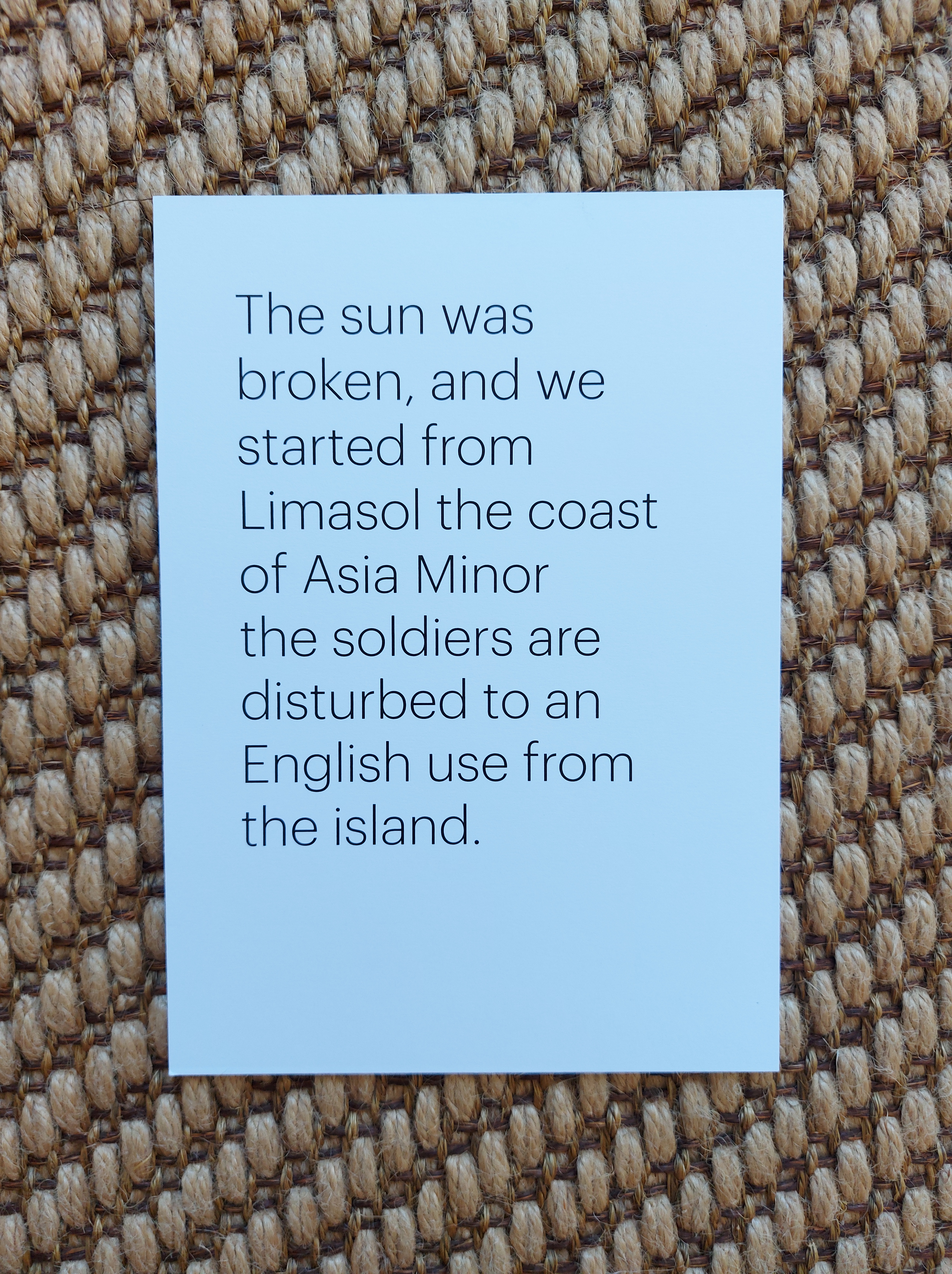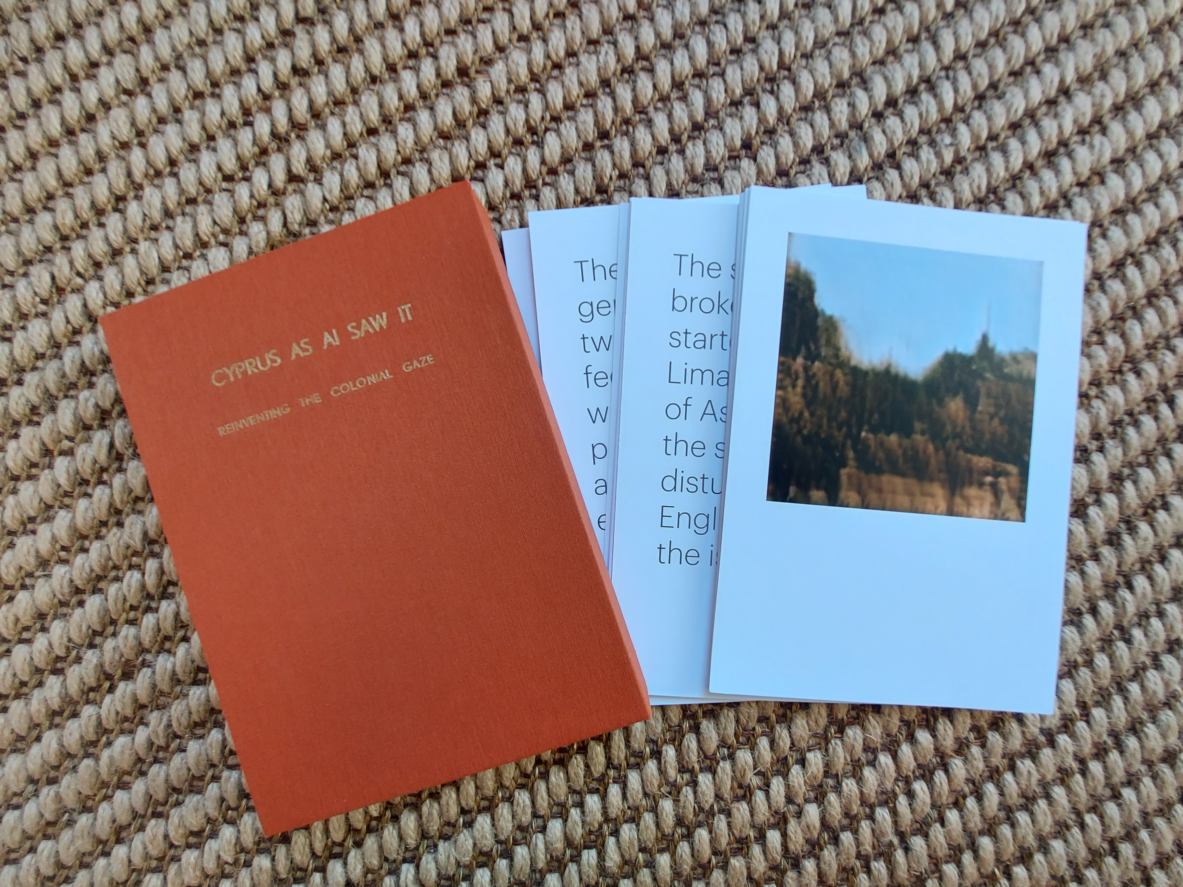 In addition to some of the original colonial-era books which were used to train the decolonial AI system, the installation presents the outputs of the material generated by the AI system, in the form of a ‘decolonial’ book about the island of Cyprus, while a mobile app version of the project allows users to generate colonial text and image upon demand.